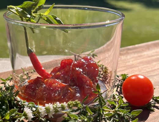 Mit den köstlichen, kleinen Tomaten, direkt vom Bauern, habe ich auch dieses Jahr wieder die Tomaten-Marmelade eingekocht. Inspiriert durch die liebe Köchin von der Corona-Guestfarm in Namibia, wo wir schon zweimal genächtigt haben. Die Marmelade ist durch Zugabe von Chili, Ingwer und Zitrone würzig,…