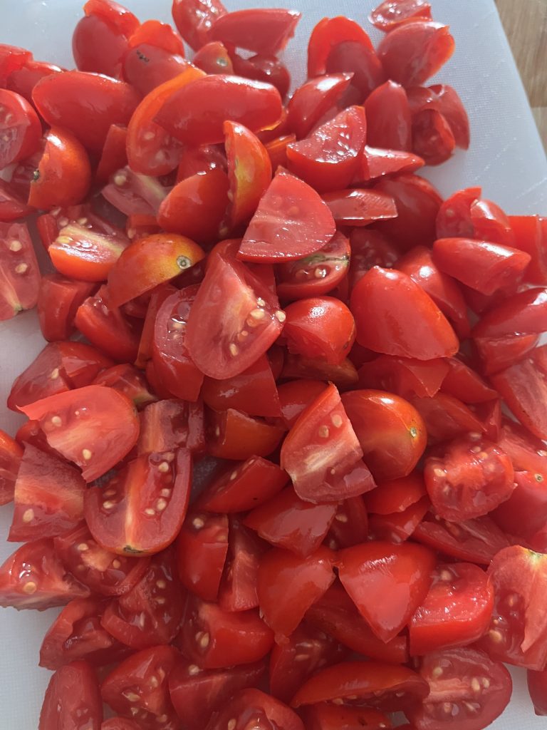 Wenn ihr schnell seid, bekommt ihr auf dem Markt noch frische, kleine Tomaten ……. viel Spaß beim Ausprobieren!