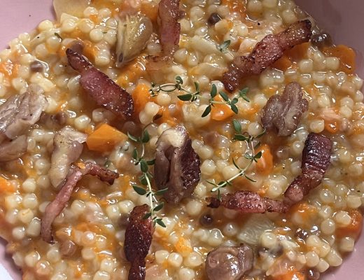 Die kleinen Kügelchen, namens Fregola sarda sind etwas ganz Besonderes für mich. Es handelt sich um Pasta aus Sardinien; Hartweizengrieß und Wasser werden verkrümelt; die Teigkügelchen im Anschluss getrocknet und geröstet. Nimmt man einen…