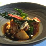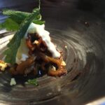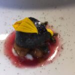 Ana Ros arbeitet vorwiegend mit regionalen Zutaten; der Käse stammt aus Tolmin. Er wird jung gekauft und reift im eigenen Keller nach- auf der Käseplatte findet man ihn in den verschiedenen Reifegraden wieder.