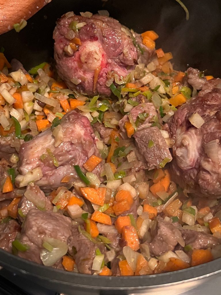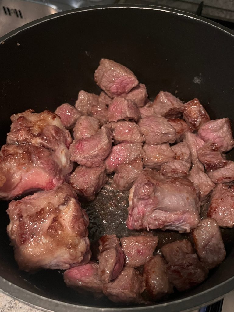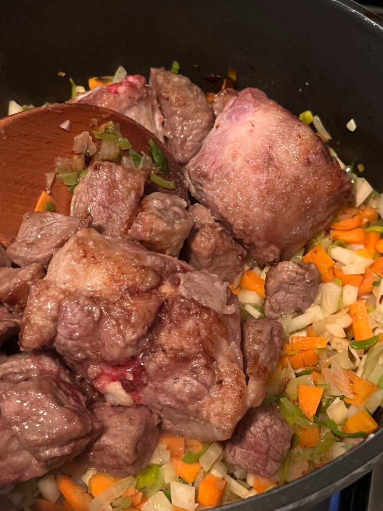 Wichtig ist, dass das Fleisch am Ende des Schmorvorganges quasi zerfällt…..