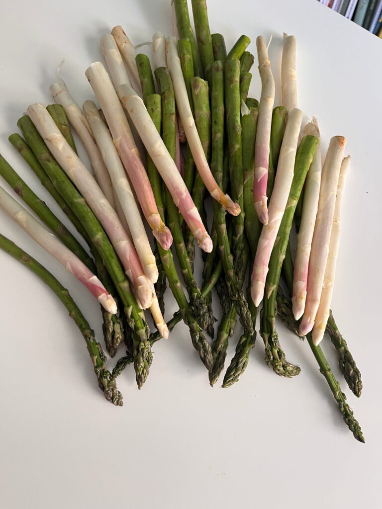 Nach einigen Tagen, an denen ich viel auswärts gegessen habe, freue ich mich sehr auf das Kochen in meiner italienischen Küche und eines ist mir schon seit Tagen klar – ich will Spargel verkochen und essen!!!