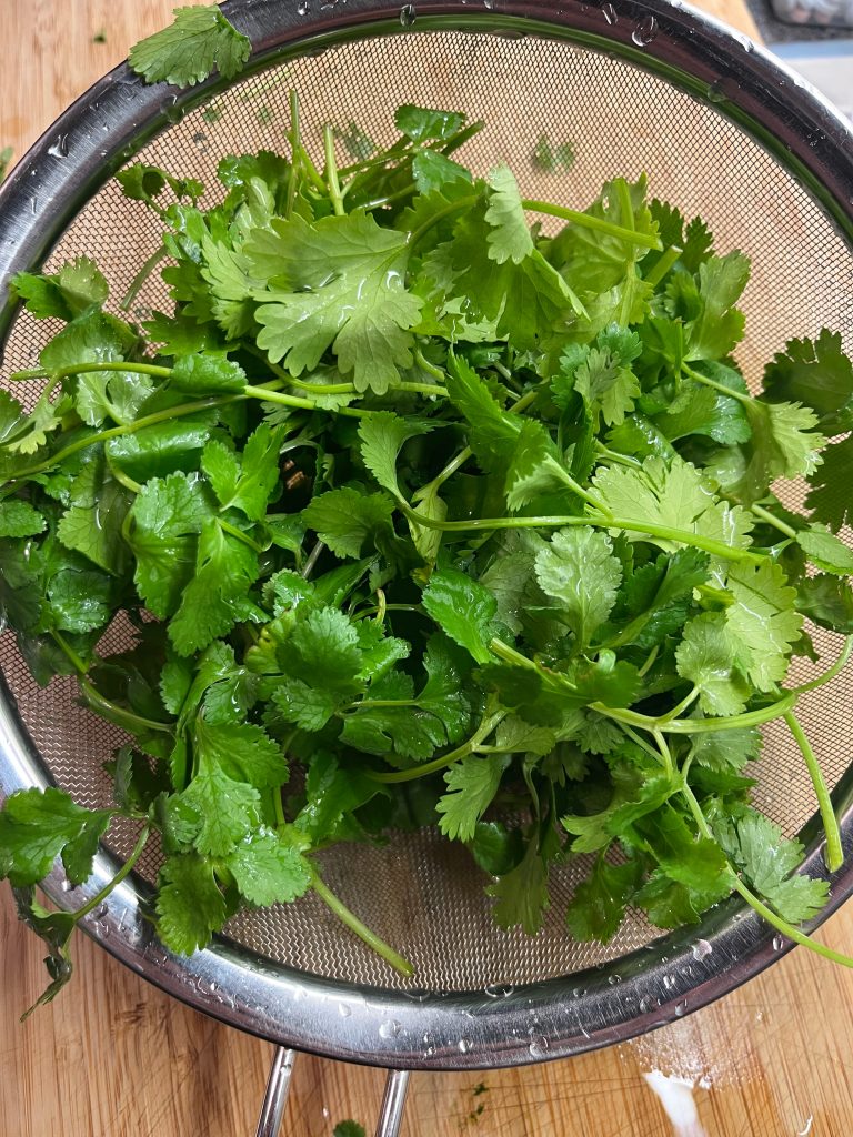 und so checke ich als Nächstes den Inhalt des Kühlschrankes und finde die längst vergessene Misopoaste, Limetten und Skyr; Koriander ist auch noch übrig! Perfetto!