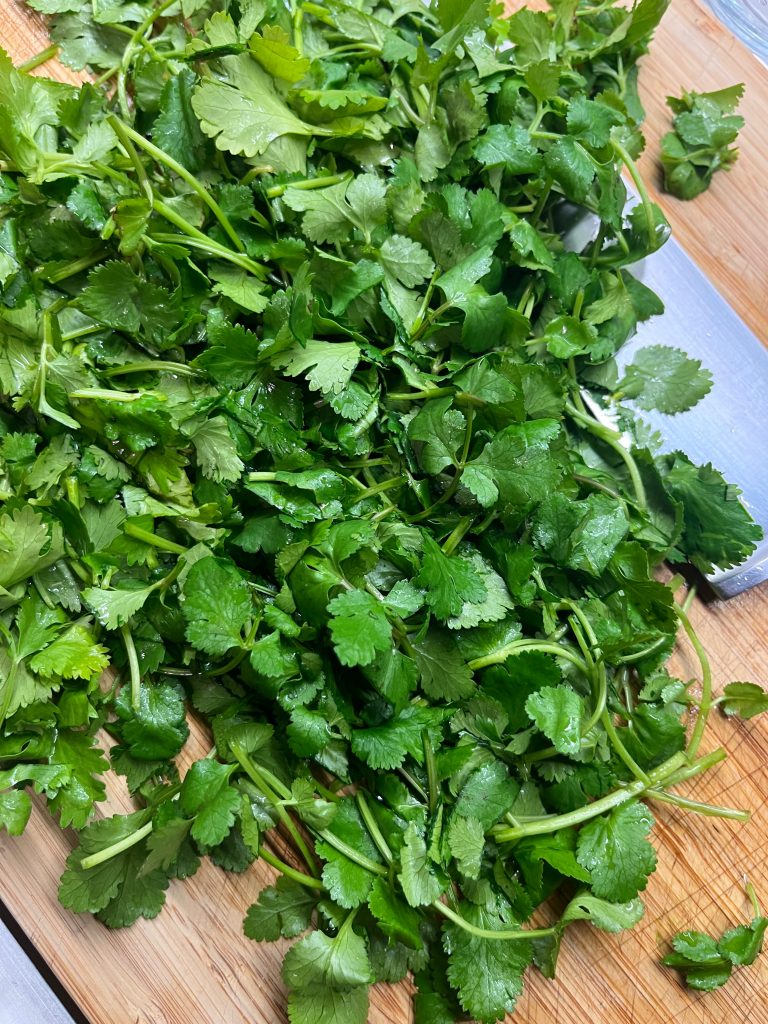 Dazu beigetragen hat eine Zutat, die mir zum Glück, eine dieser beiden Freundinnen jedes Jahr schenkt …. ihre selbstgemachte Salzzitronenpaste … die ich in das Korianderpesto eingebaut habe und dieses wirklich aufgepeppt hat!!! Alternativ könnte man etwas Zitronengras mitpürieren.