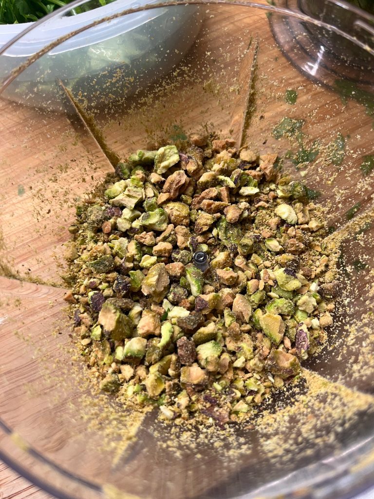 - Dekoration: Korianderblätter, gehackte Pistazien, Pfeffer