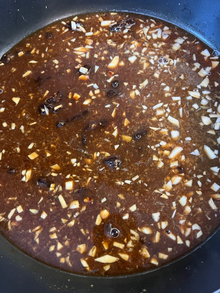 Knoblauch und Ingwer kleinwürfelig schneiden und in einer weiteren Pfanne gemeinsam mit der Misopaste, dem Honig, Limettensaft und etwas Wasser köcheln lassen. Die Sauce scheint zu Beginn dünnflüssig, verdickt sich aber relativ schnell. Wenn sie zu dick erscheint einfach noch Wasser dazuleeren.
